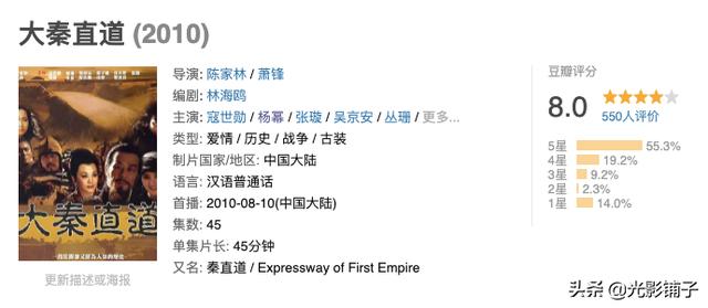 不过可惜的是,《大秦直道》《王昭君》这两部剧看过的人可能不多,在豆瓣网上前者标记看过的人只有五百多,后者也只有三千多。