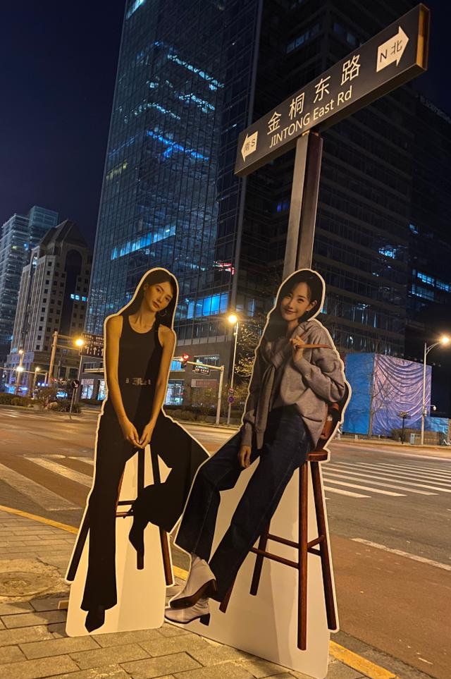 比如说就要网友为了磕李一桐和金晨的CP,将两人的人形立牌搬到了一条寓意不错的道路上合影。