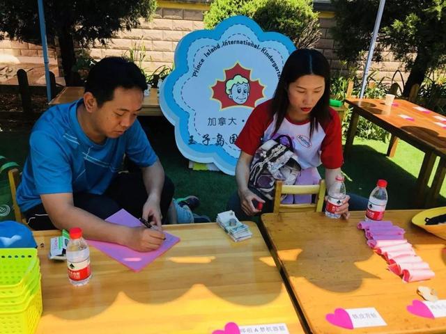 我园大班的“爱心小天使”将售卖所得善款移交给家委会的叔叔和阿姨,进行善款的统计与记录。
