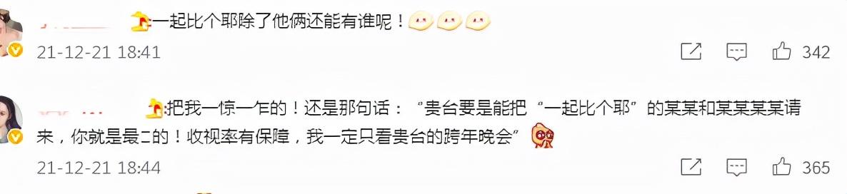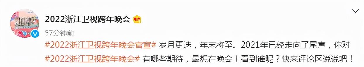 浙江卫视也没有官宣阵容,但跨年晚会官博却将问题抛给了网友:“最想在晚会上看到谁呢?”算是提前预热了一波。按照惯例,一般会邀请浙江卫视一些综艺节目里的嘉宾。