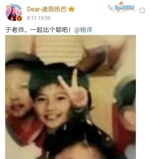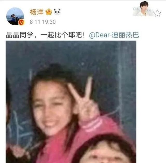 原来杨洋和迪丽热巴在《你是我的荣耀》播出期间,互相在微博上放了对方童年比耶的照片,还有“一起比个耶吧”的相关词条。“荣耀夫妇”也成为本年度最甜荧幕情侣之一。