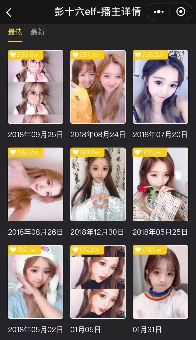 位居抖音“美女”品类热榜前五的“彭十六elf”,是个 97 年出生的小姑娘,早年混迹的平台主要是