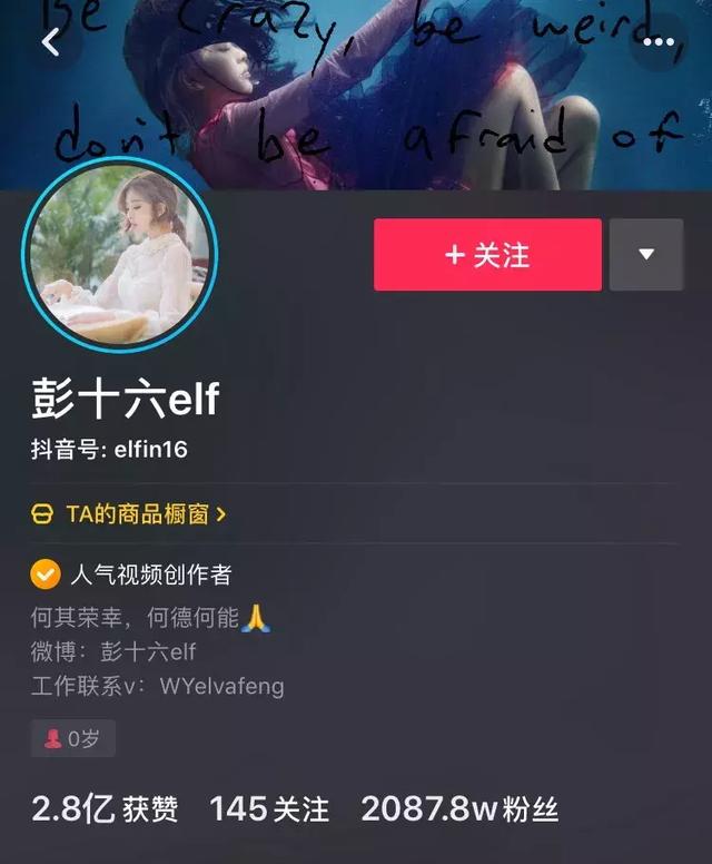 ,很快“彭十六elf”就火起来了,每条短视频的最低点赞都是以万为单位计算……