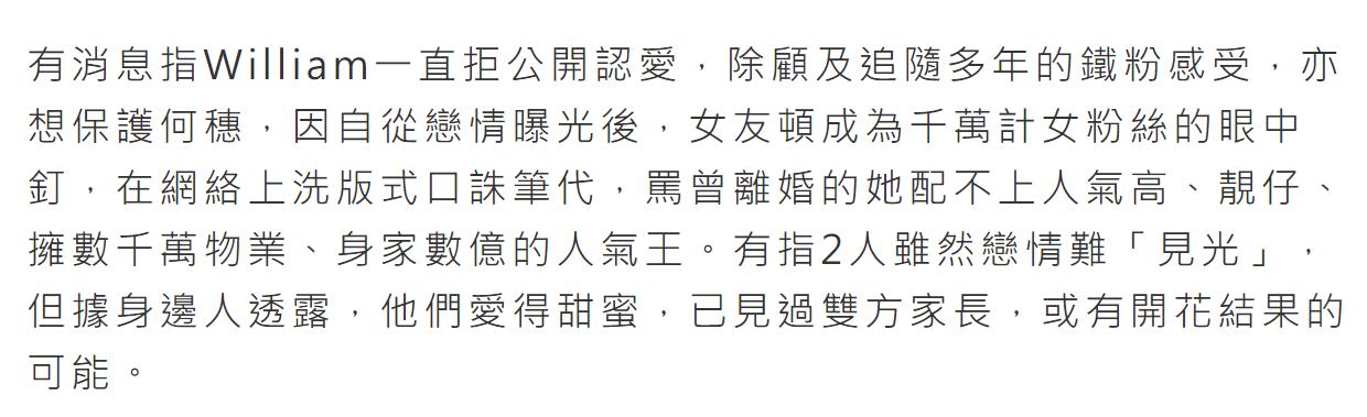 陈伟霆36岁了,而何穗32岁,两人也到了适婚年龄。尽管现在双方都不回应,还没有官宣,不过据身边人透露,他们爱得甜蜜,已见过双方家长,或有开花结果的可能。