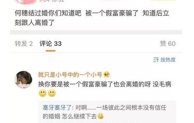 据说,当年何穗是因为遇上假富豪所以果断离婚的,她曾经还在微博晒出过结婚照,上面显示是2014年领证,不过很快何穗在综艺中就表示自己单身。