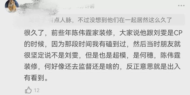 其实早在8月份被拍后,就有网友爆料称两人确实在一起很长时间了,她朋友曾在两年前爆料,称陈伟霆和何穗在一起了,之所以知道是因为她和陈伟霆住在同一个楼里。不仅如此,陈伟霆装修何穗好像还到场监督。。