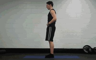 稳定住躯干,然后注意力集中在臀部,向前推臀部,回到起始姿势;注意维持肩膀的稳定,不要驼背、耸肩、头前伸。10次/组,共完成3组。