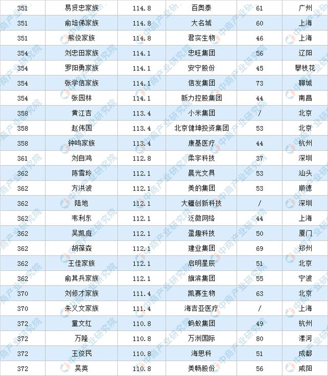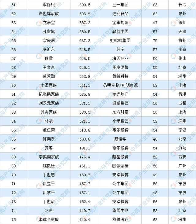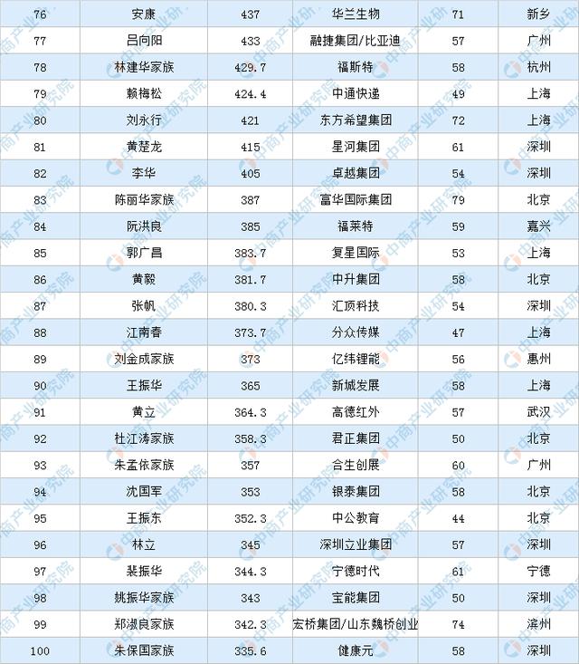 29位富豪财富超1000亿元,其中,马云连续三年位列榜首,财富4377.2亿元。马化腾排名第二,财富达到3683.2亿元。钟睒睒位居第三,瓶装水企业农夫山泉和医药企业万泰生物上市后,钟睒睒财富增至3596.5亿元。此外,恒瑞医药/翰森制药的孙飘扬家族、美的集团的何享健家族、顺丰控股的王卫、拼多多的黄峥、碧桂园的杨惠妍家族、字节跳动的张一鸣、恒大集团的许家印进入榜单前十。