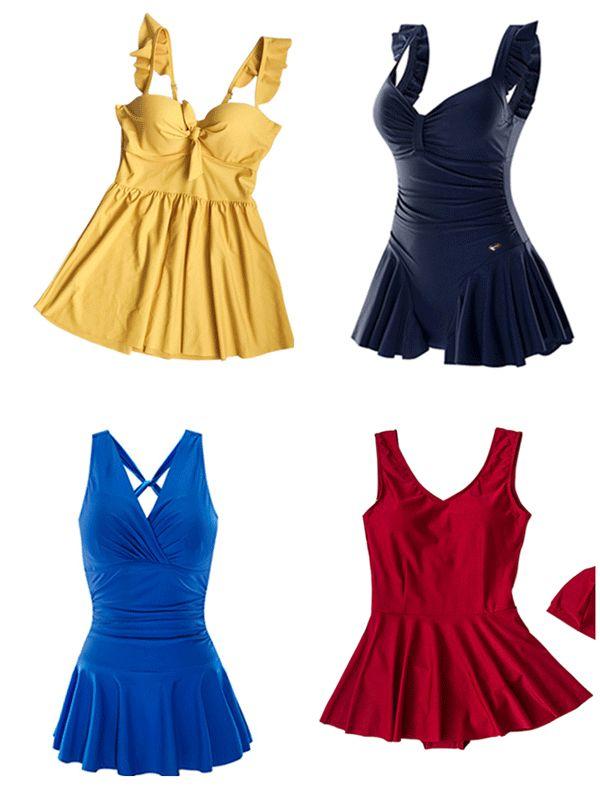 聪明讨巧的腹部宽松设计能掩盖腰腹膨胀,可以用镂空或鲜艳的颜色减轻重量感,可调节的肩带和可拆卸的填充杯也满足了不易走光的安全性。
