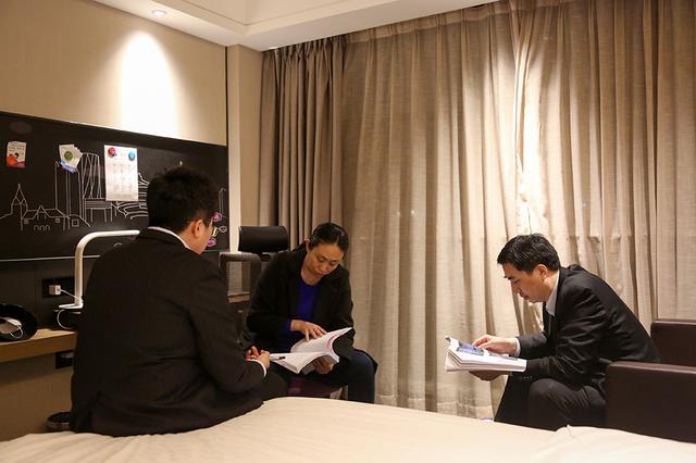 2020年6月4日,第一次庭前会议前一晚,黄乐平、李婧在酒店内核对要提交的证据。夏天 摄
