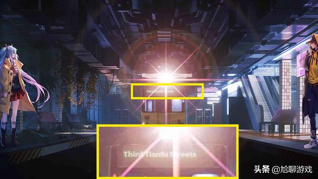 13.刘备&孙尚香-时之恋人海报,迎面驶来的地铁上刻有一串英文:“Third Tianfu Streets”,同样是“天府三街”的意思。