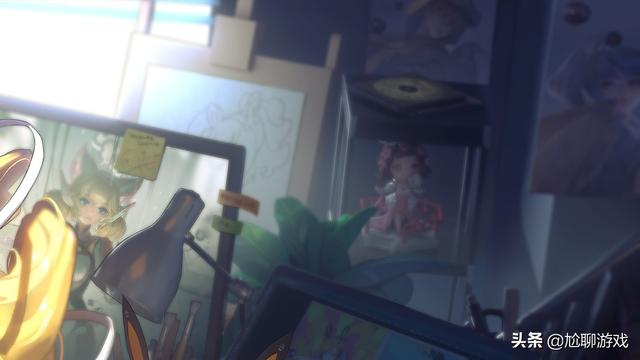 右侧背后,依次是妲己-时之彼端的海报、刘备&孙尚香-时之恋人的海报、甄姬-游园惊梦的手办。