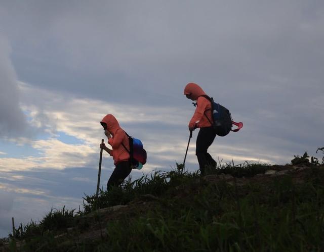 从堎头村到九龙山庄三个多小时的徒步,没有看到一个人,一个小时后到了草甸的最边界,上了山梁风很大,大概有六七级,靠两根登山杖的支撑才能交叉前进,翻过九龙界、九龙山,才到了九龙山庄