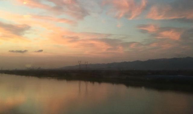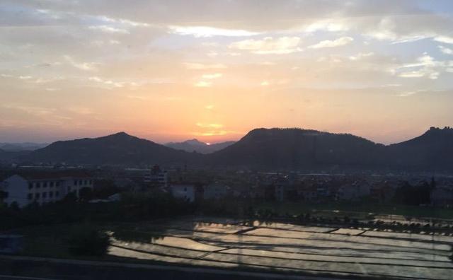 十七日在往萍乡高铁经过义乌时见到了绚丽的日落,隔着车窗玻璃,用手机拍到了晚霞。