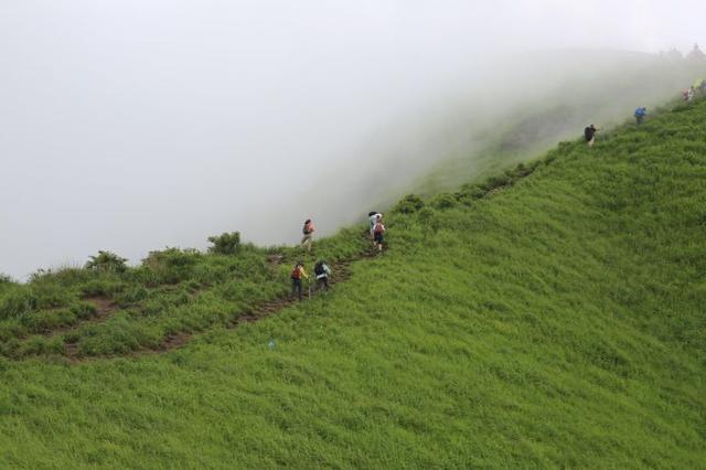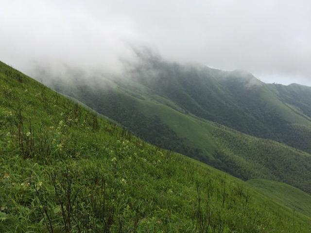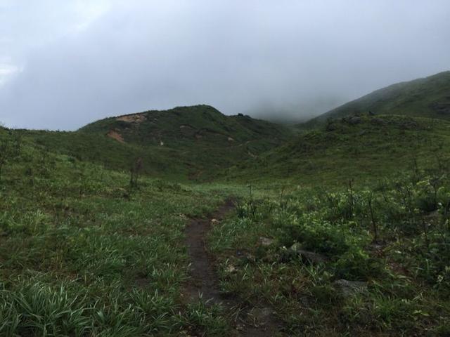 武功山明月山全程穿越一直是我的夙愿,记得去年十一月从龙山村上发云界,望着对面明月山的十万大山沉思良久,想着什么时候去走走全程穿越。双休日一个人来了场说走就走的行走,并走了条平常人没有走过的路,六月十七日周五晚六点四十分杭州高铁到晚上十点三十分到萍乡北高铁站,十二点到沈子村,准备武功山全程穿越,十八日早上六点从堎头村上山,见到高山梯田以及突然降下的小雨,上山梁后能见度仅五米,大风有六七级,靠登山杖支撑勉强前行,经过九龙界、九龙山、九龙山庄、铁蹄峰客栈十二点左右到达金顶,过吊马桩、白云客栈、绝望坡、好汉坡,晚上六点到达风车口上,借宿顺达客栈。十九日五点看日出,七点开拔,过发云界后钻入明月山的十万大山,在丛林中穿行,经过沈家大院到中国福山羊狮幕,三点许出明月山景区,全程行走约五十公里。