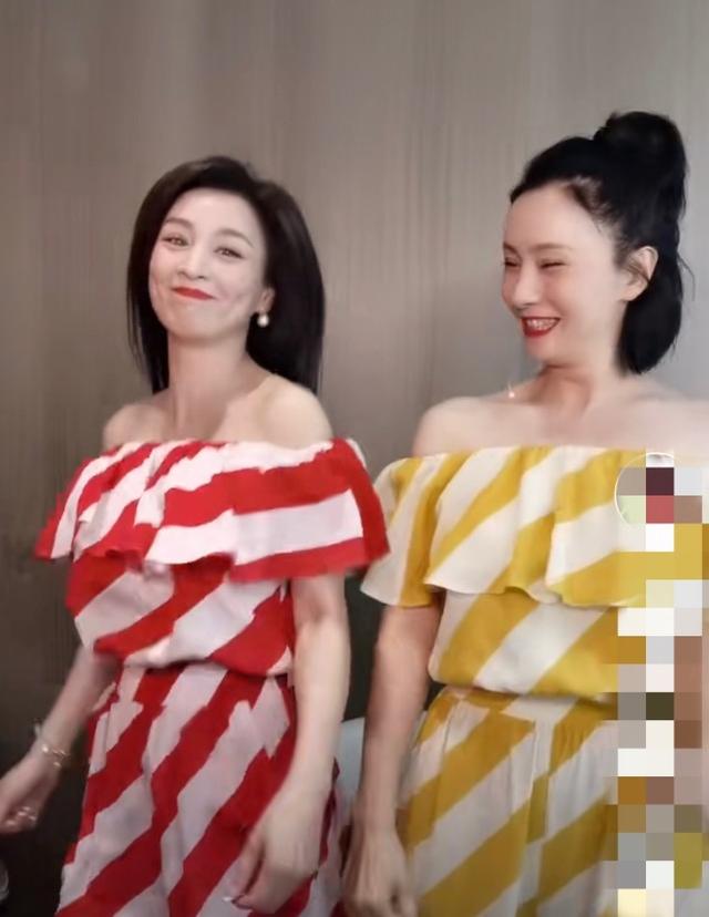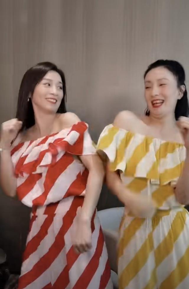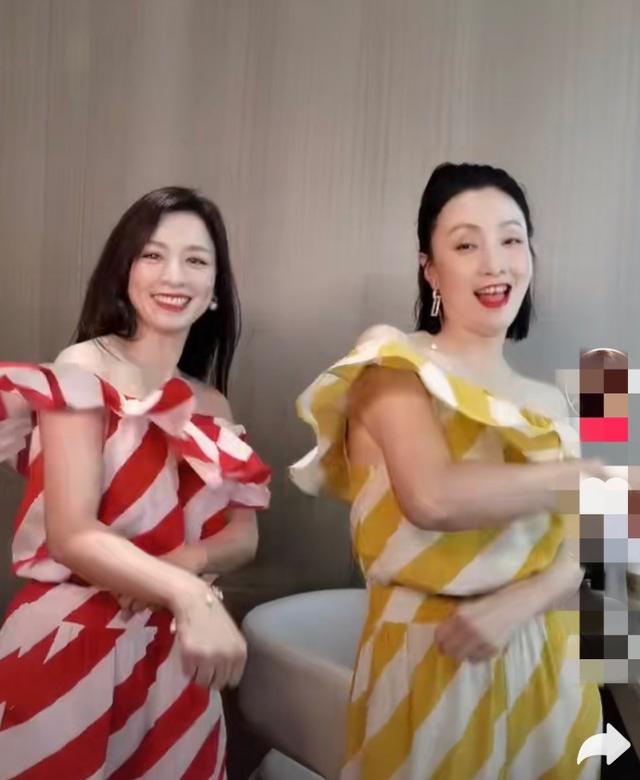 两个人的这种友情,说起来还是很令人羡慕的,感情一直都特别的好,这一次张庭和陶虹又合体出现,两个人还穿着一模一样的连衣长裙,不过连衣裙的款式虽然一模一样,但是连衣裙的颜色还是有明显的区别,两个人选择了不同的撞色,张庭身穿红色和白色两种颜色拼接的条纹连衣长裙,而陶虹则选择了黄色和白色两种颜色拼接,不过说起来还是都很美的。