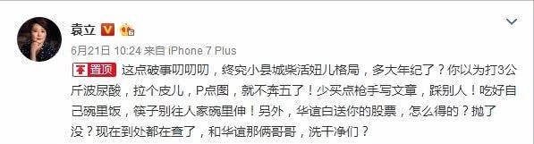 女钢炮袁立却跳了出来,一日之内连发多条微博,矛头直指李冰冰,言辞犀利。