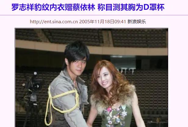 虽然罗志祥并不一定是故意为之,但实际上,罗志祥对蔡依林也不是第一次这样了,早在2005年,罗志祥就被爆料私下送给蔡依林一套性感内衣,而罗志祥不仅把此事摆在台面上炫耀,更表示自己通过目测的方式,确定蔡依林的尺码为D CUP,言语之中满是挑逗戏虐的成分。