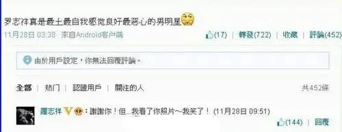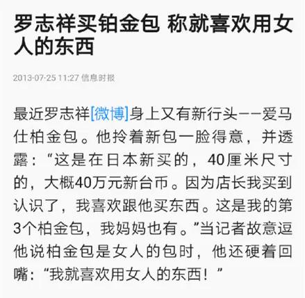 当然,在罗志祥粉丝的爆料中,诸如这种类型的黑历史还有众多,其中就包括了对粉丝撒谎、自曝就爱用女人的东西、人肉网友、自曝恋足癖、言语骚扰杨丞琳等。