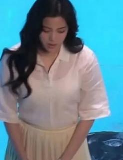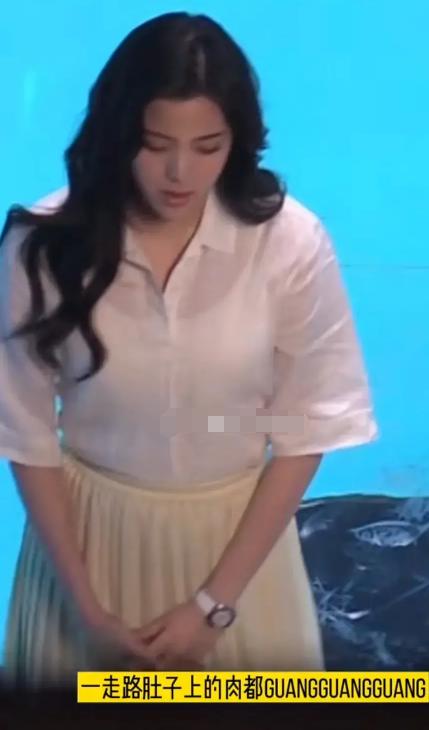 在某直播活动上,她穿了一件白色衬衣和米白色半身裙,脸是不胖,身材却臃肿到没眼看,这次发福比一样还严重。