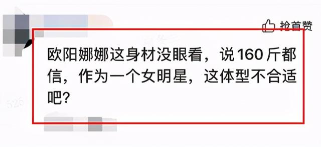 ,因为这体型实在是太胖了,欧阳娜娜净身高166,属于中等身高,这样的身高,110斤都不会胖。而欧阳娜娜这一体型,比路人还胖了,肉眼看过去,说她160斤我都信了,这太胖了。