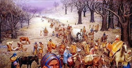 还有国家土地分配制度。利用“分配土地”的名义,收回印第安人水土肥美的领地,在新墨西哥州划一块半沙漠地区进行置换。期间采用武力驱赶的方式,跟不上队伍的孕妇与老人会被直接枪杀。