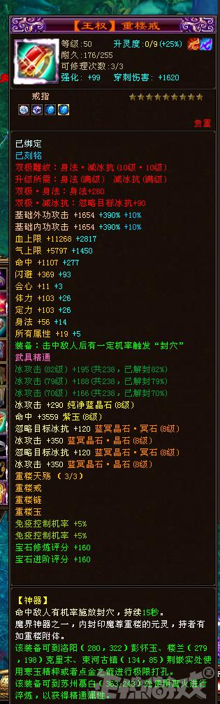 位列全服消费第一,获得了游戏中最稀有的装备——重楼戒。