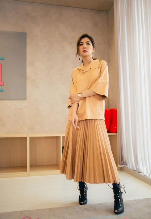 陈嘉桦完全就实现了换衣式的是整容了,换掉长裤,米色的长裙配着同色的上衣,随性扎起长发,温柔优雅,颜色小清新,更加显得整个人相当的柔和,配着个性的长靴也是非常的时尚,整个人给人的气质完全不一样了。真的像变了个人一样呢。