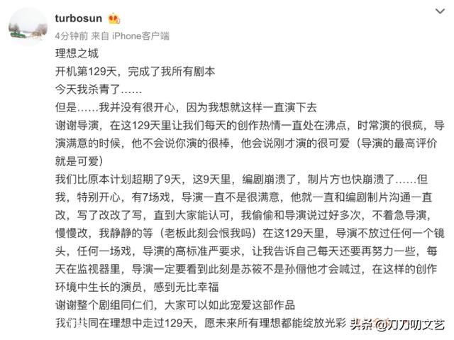 杀青时,孙俪如此感性地回忆:“这129天里,导演不放过任何一个镜头、任何一场戏,导演的高标准严要求,让我告诉自己每天还要再努力一些。”