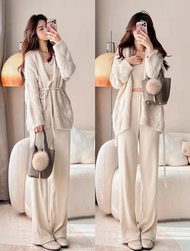 想要优雅的女生,可以试试用吊带搭配开衫毛衣,不仅可以体现出性感气息,还特别有女人味。而且这两件单品搭配到一起,不会显的累赘,还会让人看起来更加显瘦。下面配上一条阔腿裤,会让身材比例看起来超级好,尤其是阔腿裤可以提升腿部的长度,在配上上半身的穿搭,既可以展现纤细的身材,还特别有美感。
