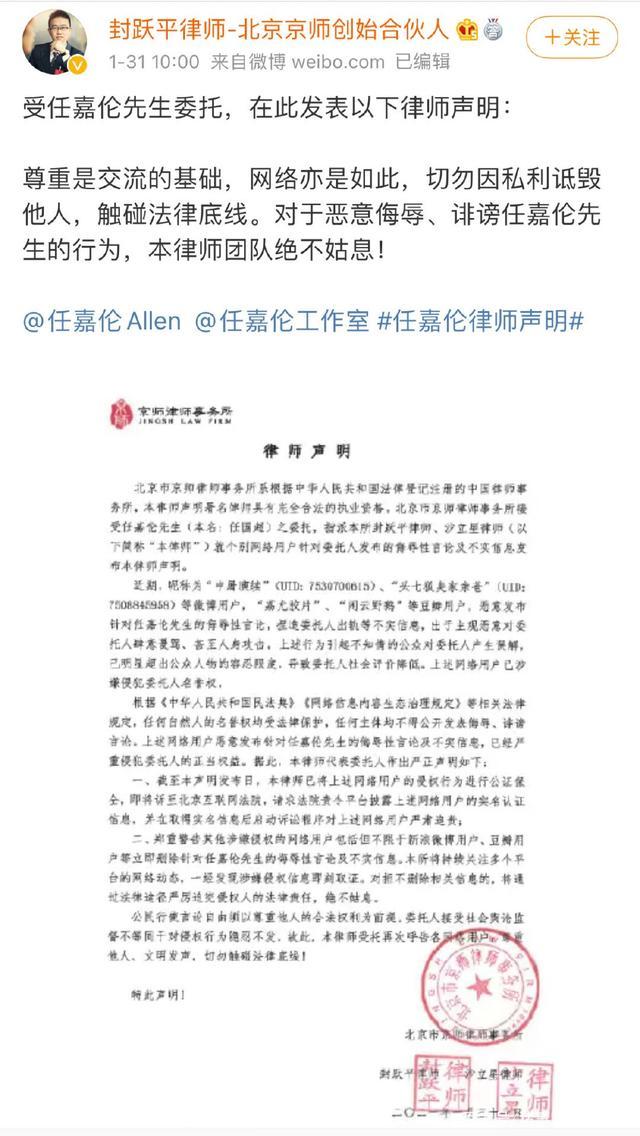 ????? 艺人们有 高质量的作品,高端的艺德,才能在圈内站稳脚跟!最近很多劣迹艺人,像郑爽、吴亦凡、张哲瀚等艺人,不仅删除社交账号、清除粉丝超话,作品下架,之后也不会给他们任何表现的舞台。这样的封杀力度,可以说是前所未有。所以艺人想要在娱乐圈立足,就要遵守法律法规,提升自己的艺德! ????? 所以,对于出轨传闻,任嘉伦是零容忍,用法律维权,赢得了很多网友的支持,谣言不攻自破!希望大家谨慎吃瓜,同时把更多的时间放在任嘉伦的作品上来! ??? 对于任嘉伦的出轨传闻,和任嘉伦律师声明,你是怎么看的呢?