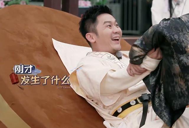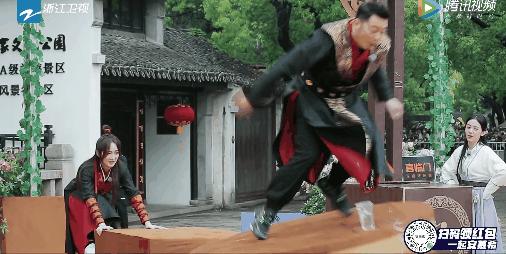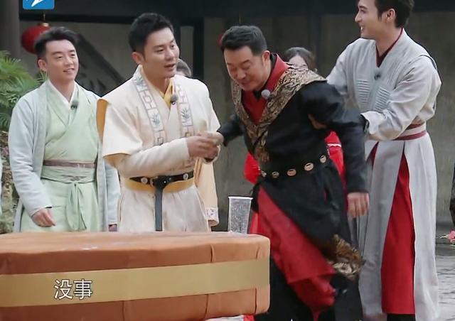 大黑牛李晨真的小看了这个游戏,上来就轻敌了,往前一跃脚滑了就摔了个“大”字,有点丢人了有没有?