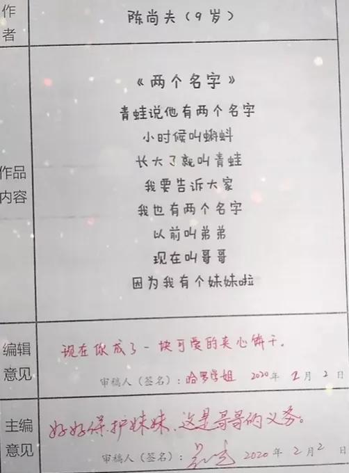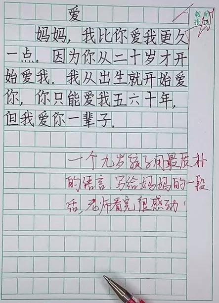 其实,孩子表达情感的方式很简单,就是写出所见所闻,所思所想,没有什么多华丽的辞藻,却也能带给我们别样的感动与震撼。