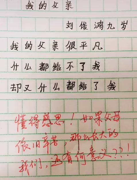 看完这篇小作文后,不禁反思,作为父母的我们,到底应该如何教育孩子?