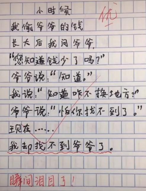 看完这篇小作文后,我和老师的反应一样,瞬间泪目了。