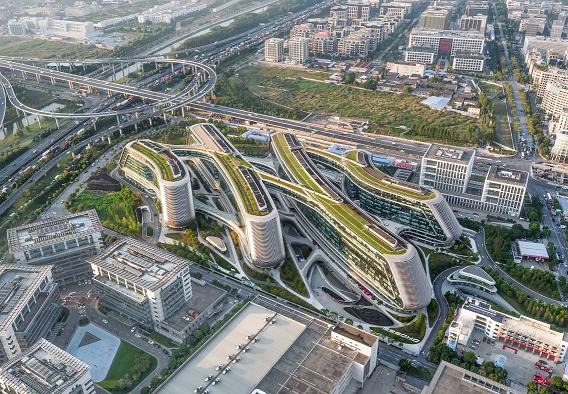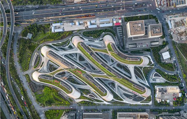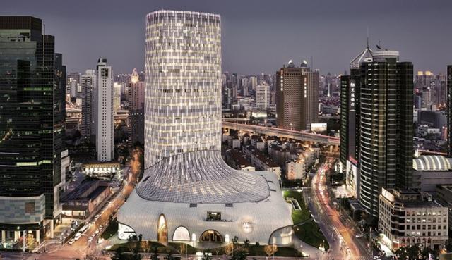 上海众多当代建筑中,打破横平竖直传统造型的异形建筑有很多,建造技术相对成熟。比较知名的是上海凌空SOHO,这是由普利茨克奖的首位女性获得者——扎哈·哈迪德设计的作品。有人评价凌空SOHO的外型好像数列即将始发的巨型高铁,拥有优美的流线型。这里的业态以写字楼为主,也一度成为众多影视剧作品的取景地。