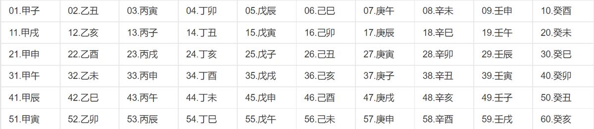 干支的排列并不是,一方固定另一方变化,比如甲子、甲丑、甲寅、甲卯........或者乙子、丙子,丁子......而是双方同时按照顺序变化,甲子、乙丑、丙寅......