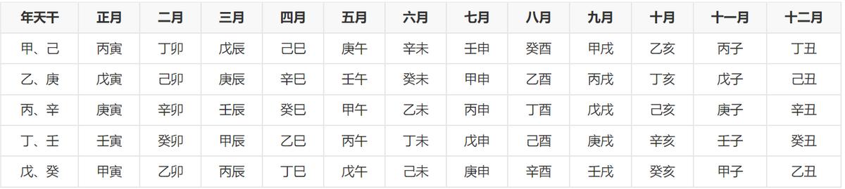 然后也肯定有人会问,我知道11月对应子,1月对应寅,那前面的天干该怎么确定?