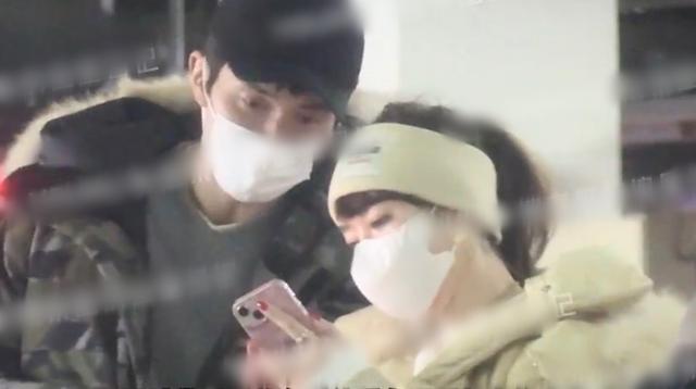 情侣间互相查看手机是很正常的行为,不知高伟光与这位美女是什么关系呢?虽然该女子戴了口罩,但还是可以看出她皮肤白皙细嫩,气质出众,两人站在一起的画面很养眼。