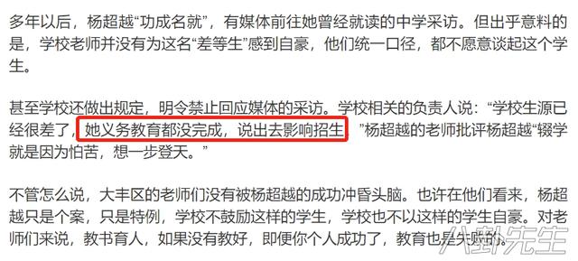 孟美岐究竟初中毕业了没不好说,但可以确定拿了第三名的杨超越是没读完初中的。杨超越刚火后不久,媒体去了她初中的母校采访,学校相关负责人却不太愿意提起她,因为她“义务教育都没完成,辍学是因为怕苦,想一步登天”▼