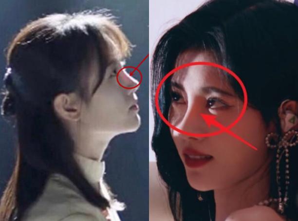 而把鞠婧祎鼻子透光的这两次画面对比后,发现她的鼻子透光程度有点不一样,戏里那次看起来更明显。因为在电视剧《请赐我一双翅膀》里不用把镜头放大,就能清楚看得到鞠婧祎鼻子透光。