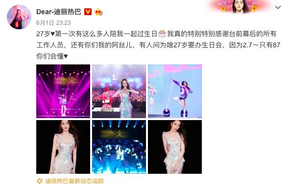 近日,迪丽热巴迎来27岁生日,得到众位明星以及粉丝们的祝福。本人发布微博,感谢这么多人陪伴自己庆祝27岁生日,言辞之间有着满满的幸福感。