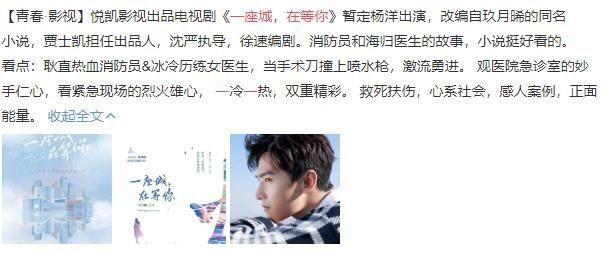 杨洋所在的公司悦凯将自制一部《一座城,在等你》目前传出敲定男主角是杨洋。