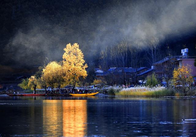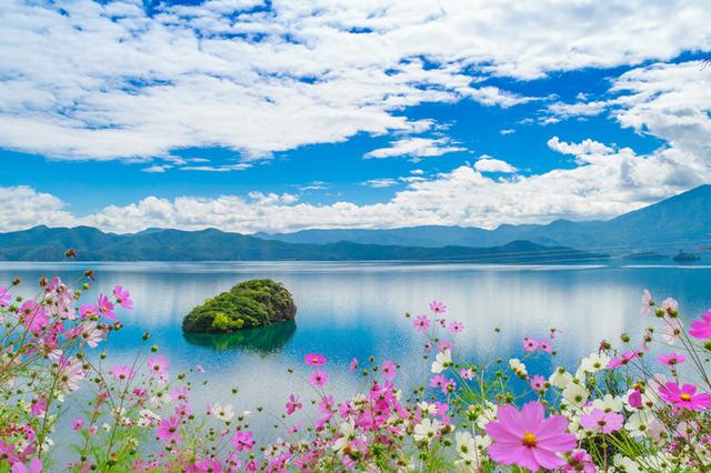 千古传说韵神奇,一泓碧水梦幻美。摩梭风情世无双,格姆神山多传奇。若是有缘来此地,湖山携得彩云归。
