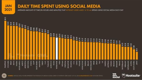 过去一年,社交媒体用户的数量增长了 13%以上。到 2021 年初,社交网络上已有近 5 亿新用户注册。根据 App Annie 的数据,Android 用户每天花在手机上的时间超过 4 小时。2020 年,安卓用户上网时长超过 3.5 万亿小时。