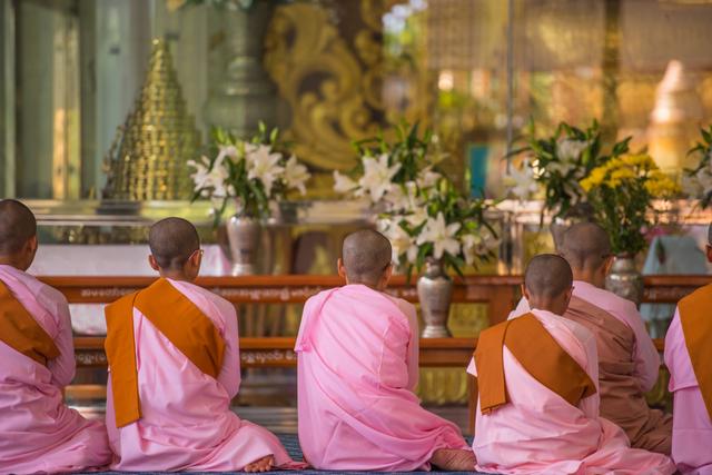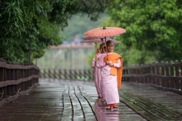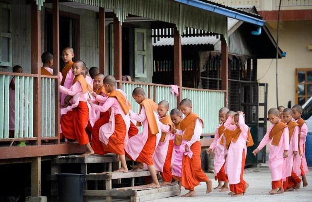 缅甸是个佛教国家,僧人在缅甸的地位很高。在缅甸,男人出家非常普遍,也会受到社会的尊重。缅甸社会把人划分为三六九等,男性僧人自然是最高等级,然而,同为出家人,尼姑却被认为是低等人,甚至社会地位都不如普通女人。然而即便如此,在缅甸街头,还是能看到数量众多的尼姑,成群结队的从路上走过。