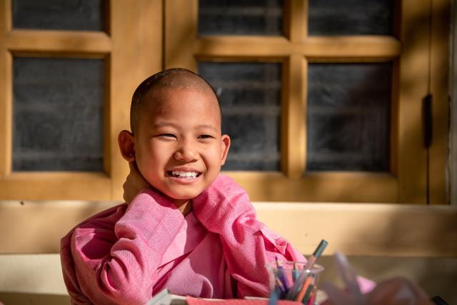 遁入佛门的女孩,从此有了安全保障,即使过着寂寞的生活,但在佛教文化的熏陶下,她们稚嫩的面庞依然显得恬静而美好。