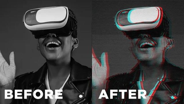 毛刺噪声是“液晶破碎时出现的图像干扰”。通过表现毛刺噪声处理,可以表现出一种电子游戏般的数字和模拟感觉!如果你经常刷D音打开其APP,这种风格就很常见。