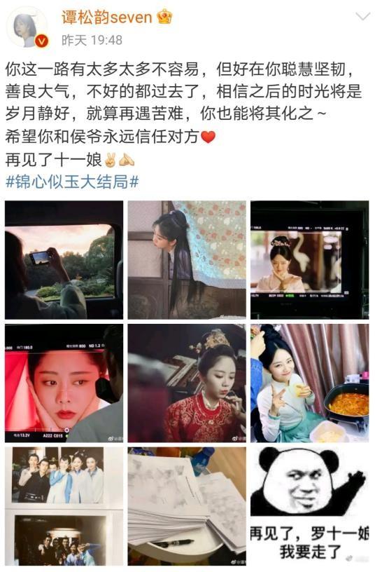 4月7日,电视剧《锦心似玉》迎来大结局,女主演谭松韵在社交平台中发文与自己饰演的十一娘告别,还对这个角色送出了祝福。
