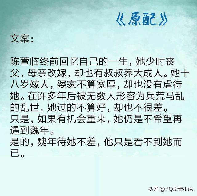 YQ简评:这篇讲的是市井人家的小人物一步步积极向上的故事,背景是民国架空的,男主是做生意的,女主是旧式妇女。男女主之间是娃娃亲,前世男主是因为和女主是旧式婚姻而排斥女主,而重生回来后的第一件事,女主就跟男主挑明白了,大意是他们之间没有感情,以后会分开的。男主听后便对女主的态度缓和,两人开始像亲人朋友那样相处。小说女主前期会比较怂,但重生回来以后会慢慢开始念书改变自己,后面也蜕变成了一个很有魅力的女性,男主一开始是不喜欢女主的,后来在一点一滴的相处中才开始动心,他们的感情没有轰轰烈烈,但令人觉得很甜蜜,女主拍男主马屁的时候简直太可爱了,两个人配一脸,推荐。